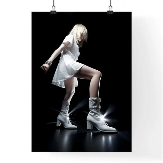 A Poster of very low angle - A Woman In A White Dress And Boots