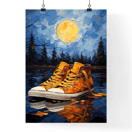 Pair Of Yellow Sneakers On A Reflective Surface Art Print