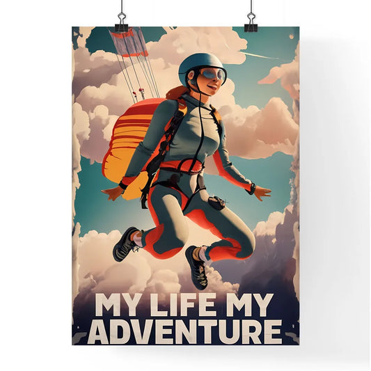 My Life, My Adventure - A Woman In A Helmet And Helmet Jumping In The Air With A Parachute Art Print