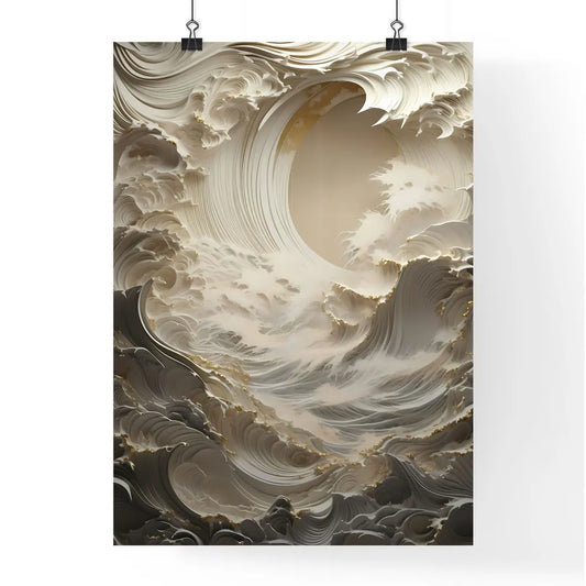 A Poster of gold and silver paper sculpture - A White Waves With A Cloud Of Dust