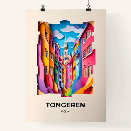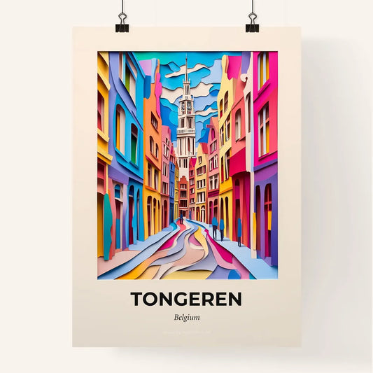 Vivid Tongeren, Belgium - a colorful city street with a clock tower in the background