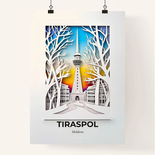 Vivid Tiraspol, Moldova - a paper cut of a tower in a city