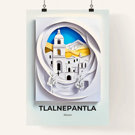 Vivid Tlalnepantla, Mexico - a paper cut of a church with a sky background
