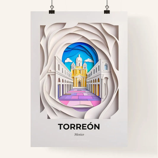 Vivid Torreón, Mexico - a paper cut of a church with a clock tower