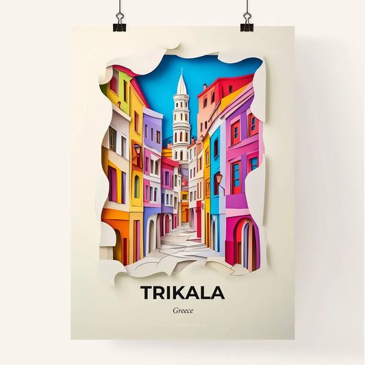 Vivid Trikala, Greece - a paper cut of a street with a clock tower
