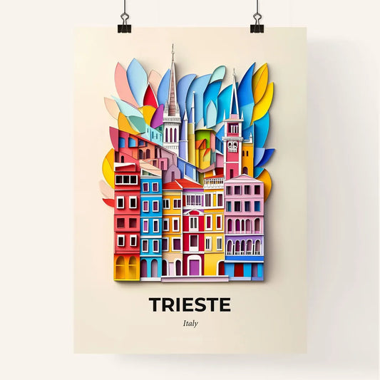 Vivid Trieste, Italy - a colorful city with a clock tower and a rainbow colored building