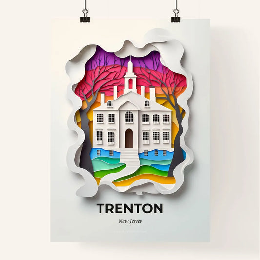 Vivid Trenton, New Jersey - a paper cut of a church with a rainbow sky