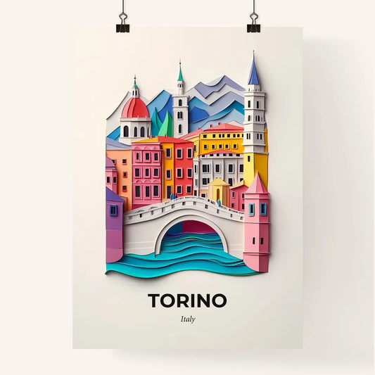 Vivid Turin, Italy - a paper cut of a city with a bridge