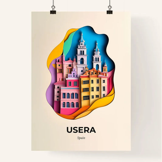 Vivid Usera, Spain - a city with a clock tower and a rainbow colored building