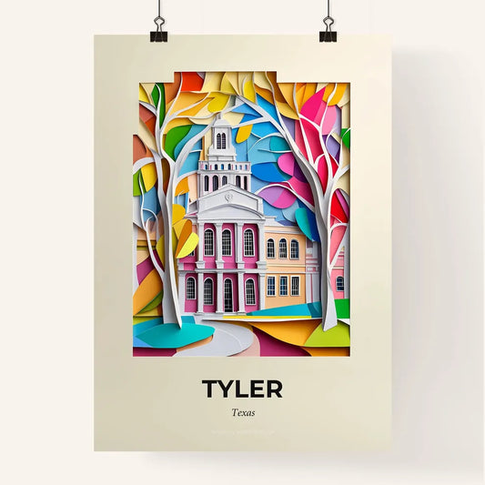 Vivid Tyler, Texas - a paper cut of a city with a clock
