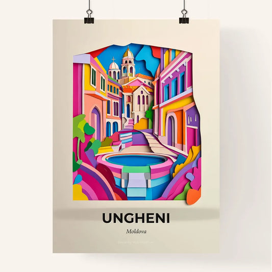 Vivid Ungheni, Moldova - a paper cut of a city with a clock tower