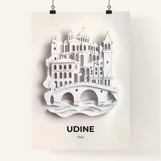 Vivid Udine, Italy - a paper cut of a castle and bridge