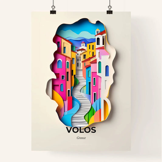 Vivid Volos, Greece - a paper cut of a colorful city with stairs