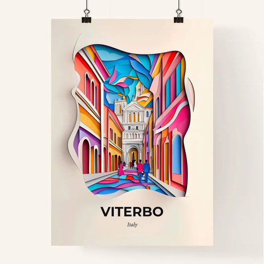 Vivid Viterbo, Italy - a paper cut of a street with a church in the background