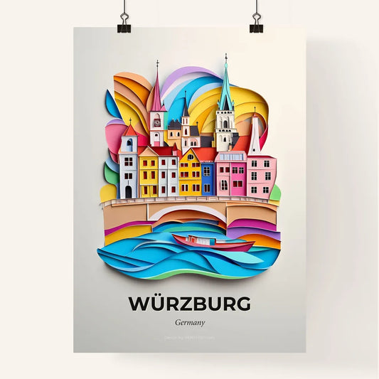 Vivid Wurzburg, Germany - a paper cut of a city with a boat