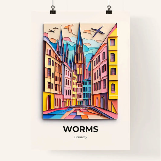 Vivid Worms, Germany - a colorful city with a clock tower and a staircase