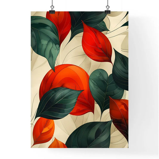 Watercolor Art Deco Leaf Pattern: Red, Green, Black, Close-Up