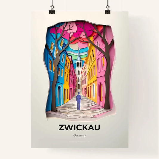 Vivid Zwickau, Germany - a colorful city street with a clock tower