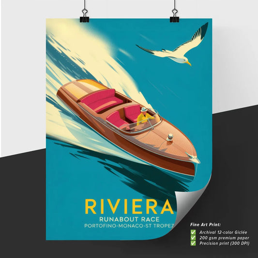 Riviera Runabout Race: Luxury Boating Adventure Across Portofino, Monaco, and St. Tropez in Vibrant Style.