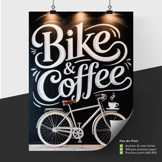 Stylish Bike and Coffee Shop Interior with Artistic Chalkboard Design