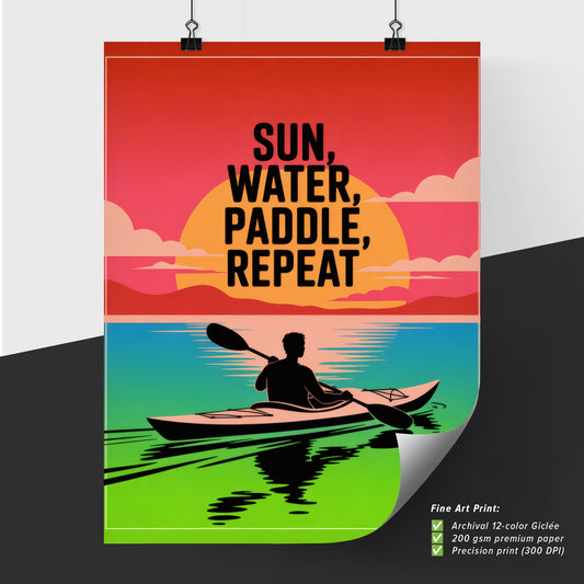 Embrace Adventure: Kayaking at Sunset with a Mindful Mantra of Sun, Water, Paddle, Repeat.