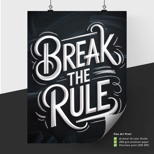 Creative Typography Design: Inspirational Quote 'Break the Rule' Against a Stylish Dark Background