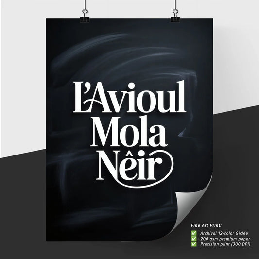 Elegant Typography on Chalkboard Background: L'Avioul Mola Nêir Design Concept for Creative Projects.