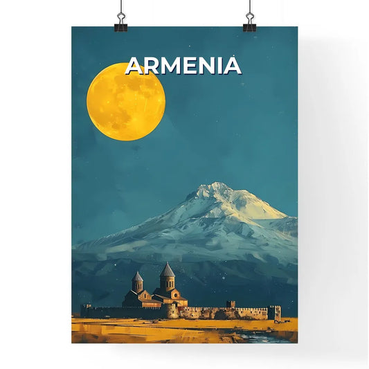 Vibrant Contemporary Painting of Moonlit Mountain Landscape in Armenia, Europe