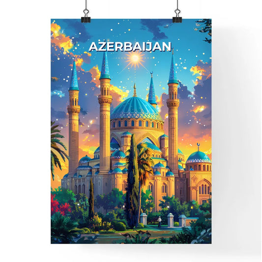 Vibrant Azerbaijani Building Art Depicting Towers and Intricate Blue Roofs