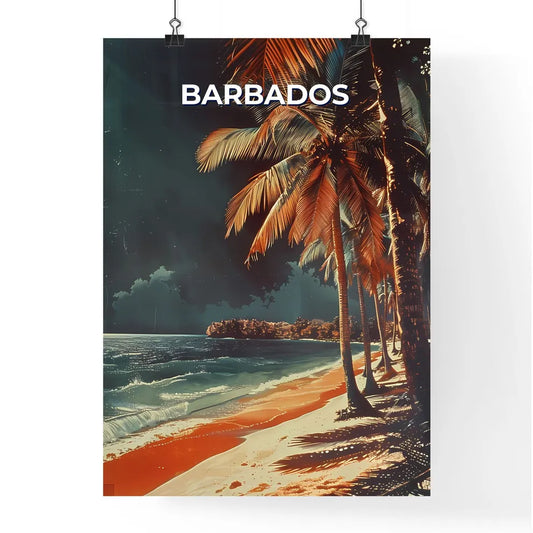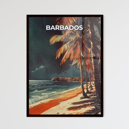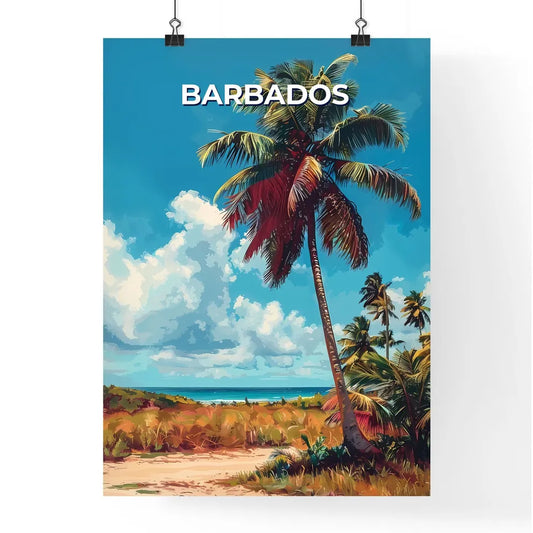 Vibrant Painting of Beach Scene in Barbados, North America with Palm Trees and Waves