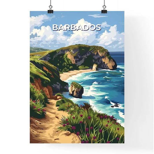 Vibrant Painting of Barbados North America Beach Cliffs Depicting Art