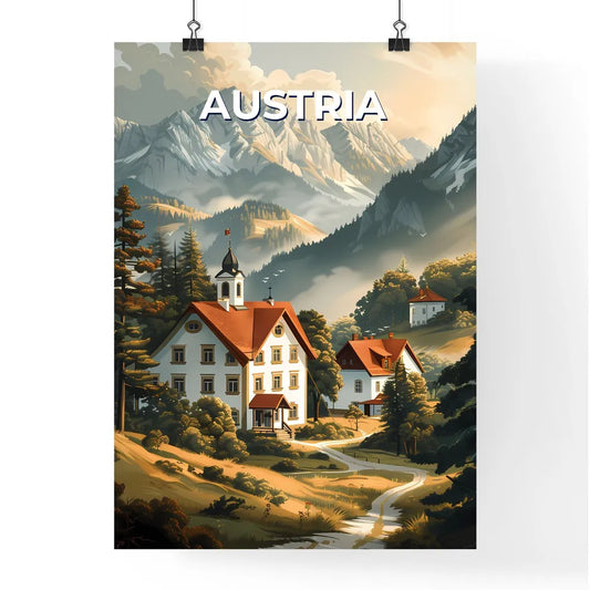 vibrant painting of a village with trees and mountains in Austria, Europe