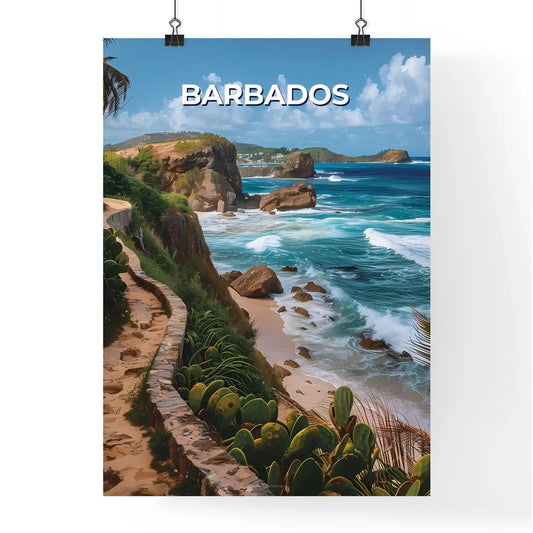 Barbados Beach Painting Bright Caribbean North America Rocky Path Vibrant Art