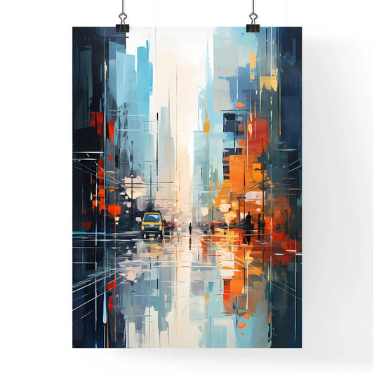 Abstract Art Of Cityscapeillustration Painting - A Painting Of A Street With A Car And People Walking On It