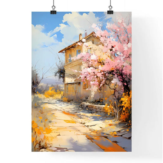 Blossoming Bush On Rural Surburb - A Tree With Orange And Purple Flowers In Front Of A Building