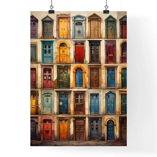 Compilation Of Old Doors - A Watercolor Painting Of A Building With Many Doors And Potted Plants