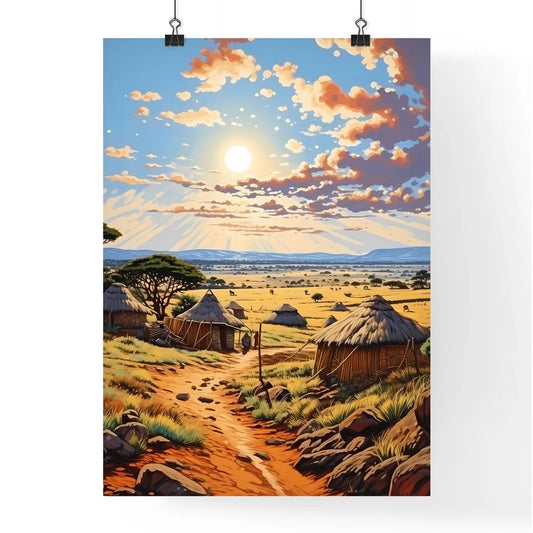 Massai - A Painting Of A Village With Straw Huts And A Dirt Road