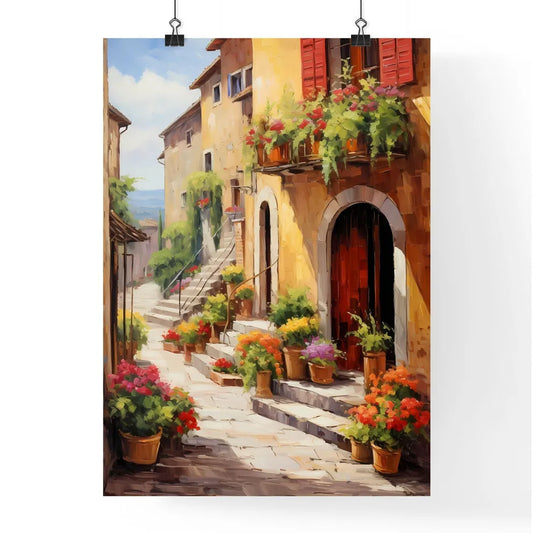 Painting Of A Stone Building With Flowers On The Side Art Print