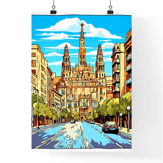 Barcelona Spain Great Vacation Poster - A Street With Cars And Buildings