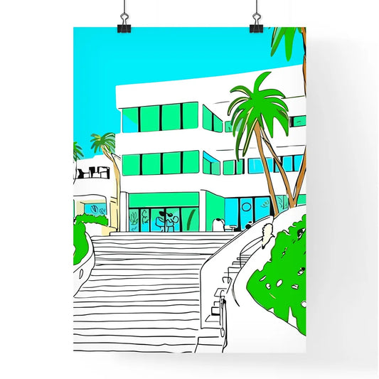 Beverly Hills US - A Building With Palm Trees And Stairs