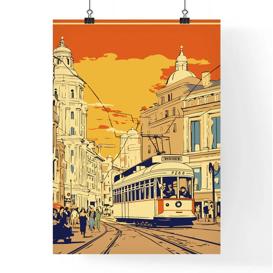 Helsinki Finland Vintage Advertising Poster - A Trolley On A Street