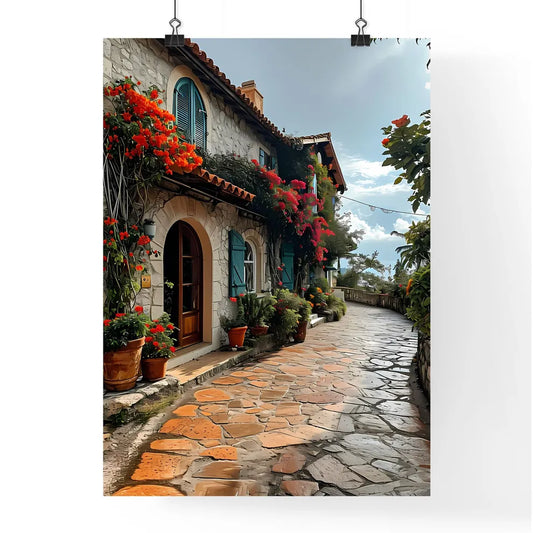 A Poster of Cte-dAzur France - A Stone Building With Flowers On The Side