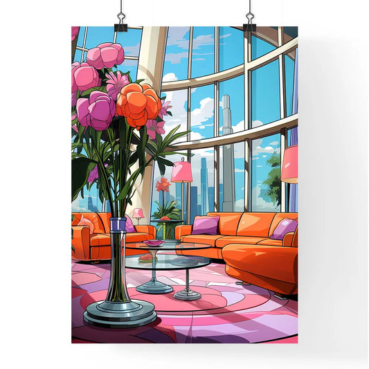 Living Room With A Couch And Chairs And A Table With Flowers Art Print