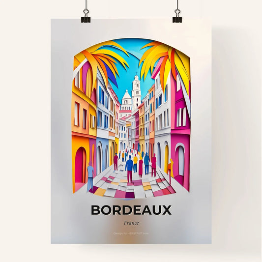 Vivid Bordeaux, France - a painting of a street with people walking down it