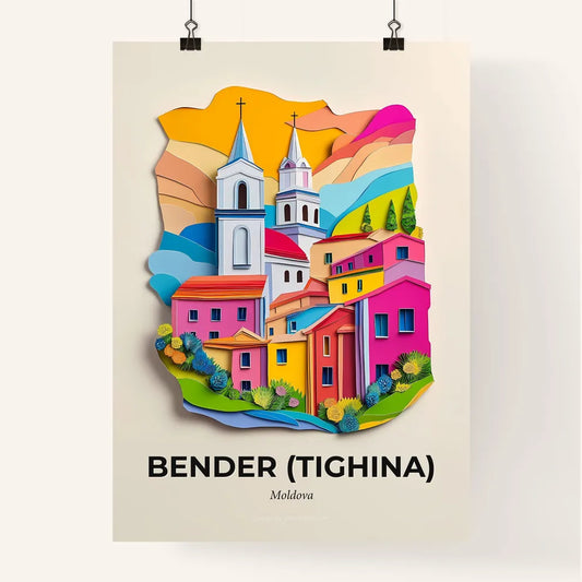 Vivid Bender (Tighina), Moldova - a paper cut of a city with a clock tower