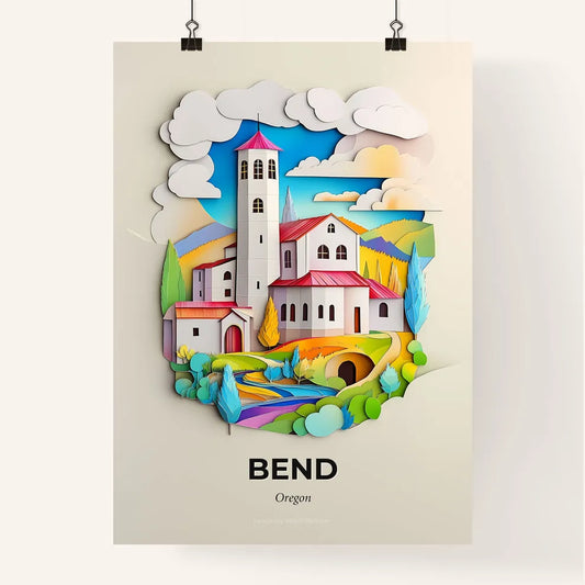 Vivid Bend, Oregon - a paper cut of a church and a river