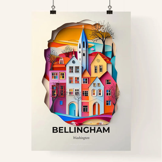 Vivid Bellingham, Washington - a paper cut of a city with a church
