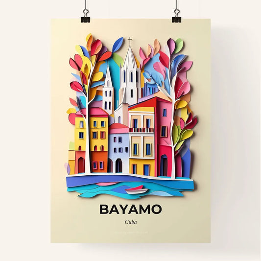 Vivid Bayamo, Cuba - a paper cut of a city with a clock tower