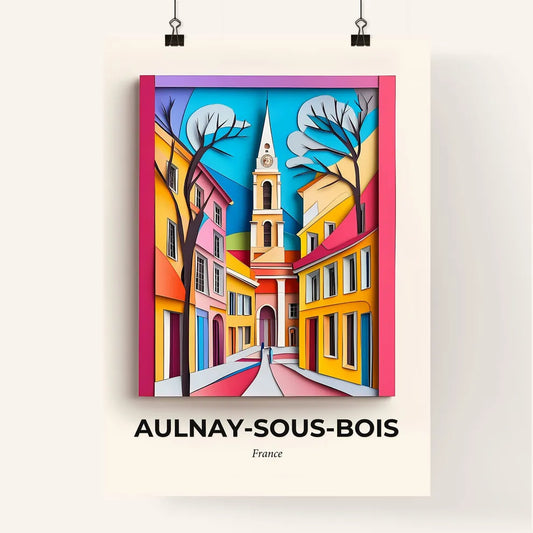 Vivid Aulnay-sous-Bois, France - a painting of a street with a church steeple