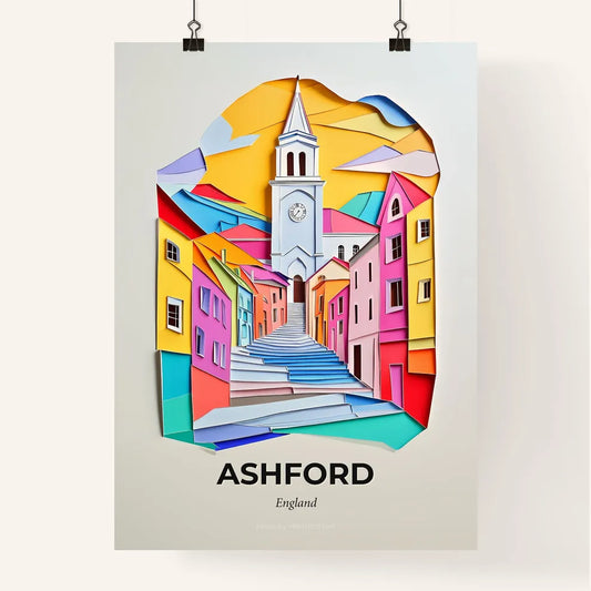 Vivid Ashford, England - a paper cut of a street with a clock tower